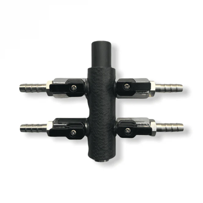 These high quality air manifolds are used to split up your air supply to multiple air stones. They come complete with taps which have the advantage of controlling the air supply rate as required. The size of airline these take is 3/8".